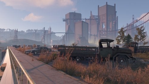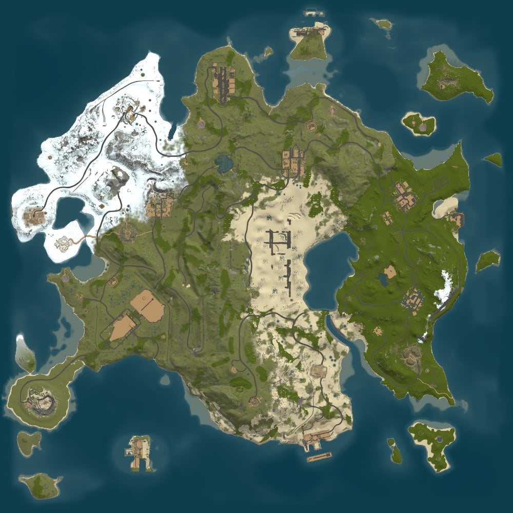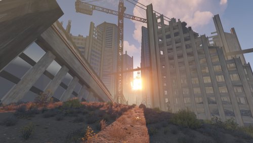 So the new year 2022 has come, and I present to your attention a well-designed map this year. This time I suggest you dive into the near future, unfortunately this future is not as bright as we would like. A global catastrophe has occurred and the world we knew is mired in the elements, and looters and nomads dominate the remains of the ruins. The central place of the map consists of 2 dilapidated cities, they store a lot of danger and loot, so the central city has a Lake with fresh water. On this map, I have added the opportunity for your players to build directly in some skyscrapers and their roofs, which are the easiest to reach by flying machines. You can also find many other locations on the maps. Monorails are installed all over the map, which will allow you to drive around the entire circumference of the map and even call in Detroit itself. I am sure that you will like the map and will bring a lot of fun, good luck nomads!