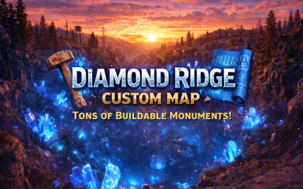 Diamond Ridge is a well designed 4096k Rust map loaded with every major monument and a ton of custom build spots. Focused on beautifully crafted terrain, canyons, lakes, rivers and rock formations. Designed for smooth performance, creative freedom, and competitive gameplay.