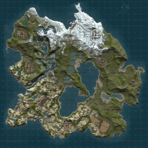 - Dragon Сanyon (4 small monuments with loot, and monuments for building)