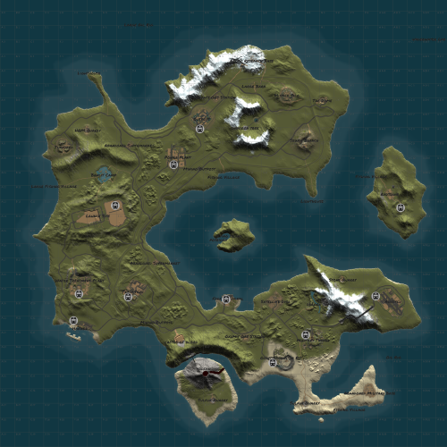 The map has four dungeons of which three are of different levels and the fourth is a dungeon on an island in the sky.