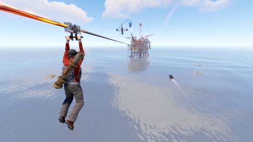 An unusual map with a lot of movement on it on ziplines. Most monuments are reduced in size and take up less space on the map. I made this map in a non-standard size of 2500, perfect for servers with not very large online. Feel like a bird and fly over almost the entire map.