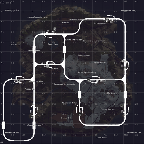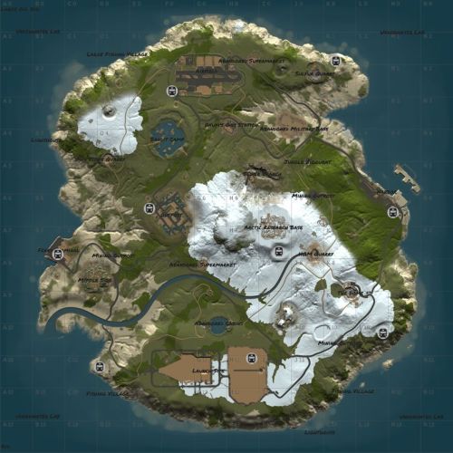 The diverse terrain ranges from lush forests to arid landscapes and rugged coastlines, complemented by gentle hills, deep valleys, and elevated plateaus. Key landmarks such as the military base, military tunnel, launch site, and more are strategically placed to encourage looting, trading, and player-on-play clashes.