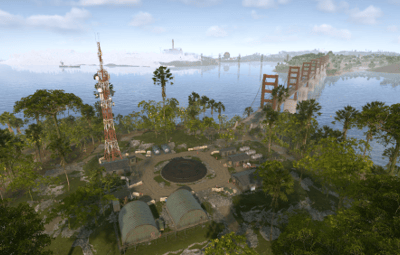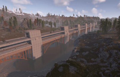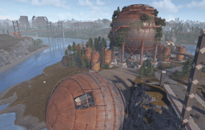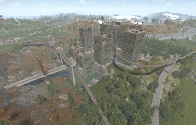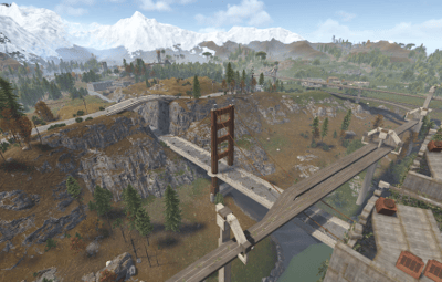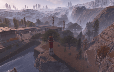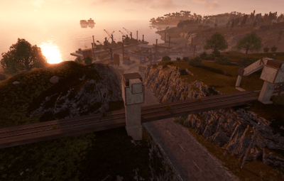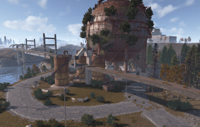 Procedural & Custom monuments are scattered all around the map with build islands off shore and small prefabs here and there to encourage exploration and make players more engaging.