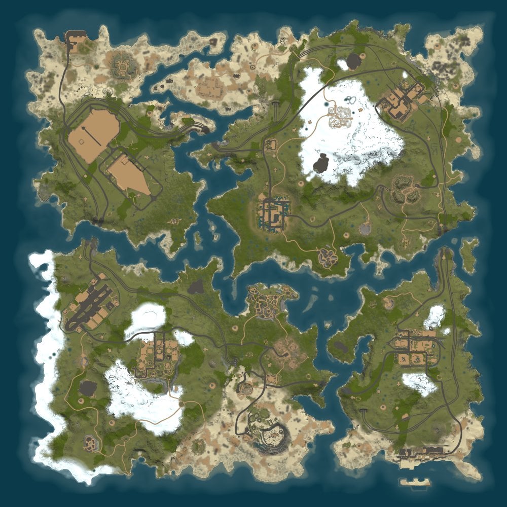 - Small lakes/puddles all over the map with drinking water and vegetation spawn for PVE servers;