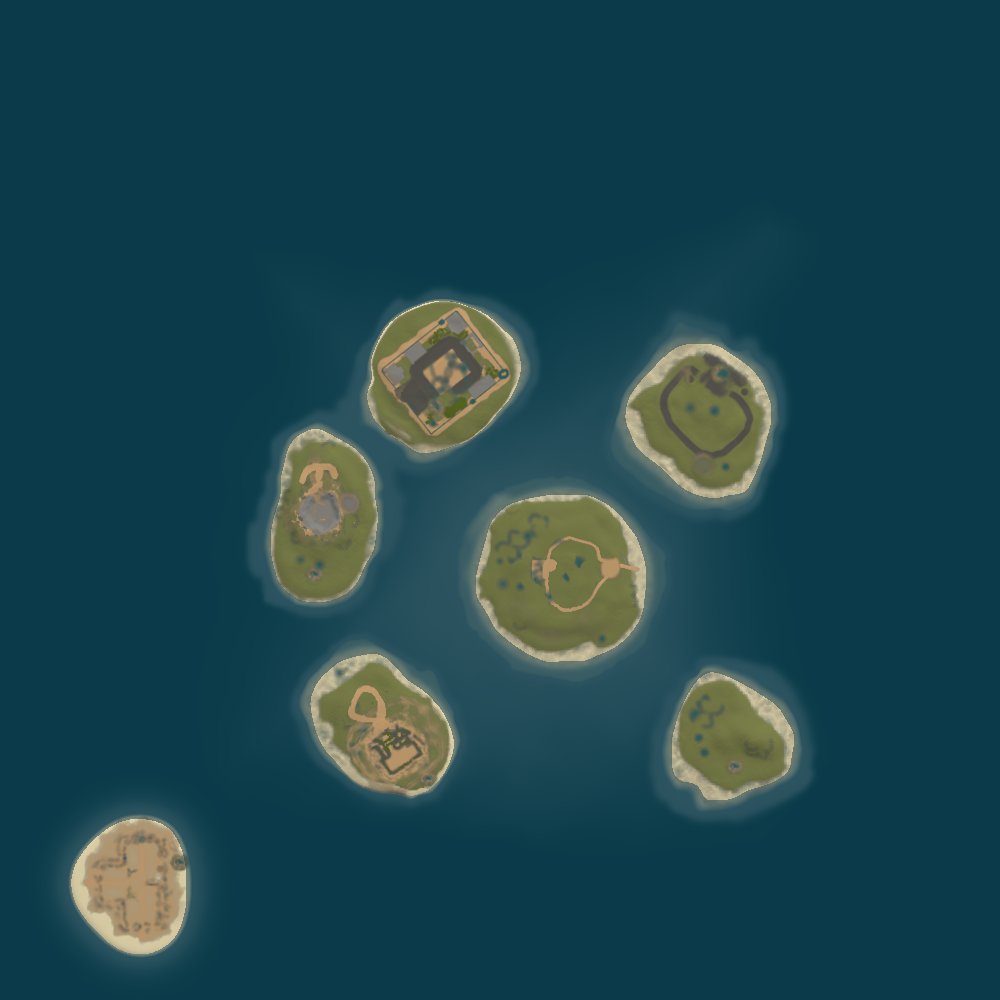 - The center island has the usual fishing village, consisting of a bandit village and a peaceful town, a peaceful town and an office filled with booty. Variety of PTs on other islands Here you will find many useful PTs such as a warehouse, gas station, lighthouse, an "Industrial Center” garden, a serious quarry and an abandoned military base. This is a real treasure trove of resources and secrets.