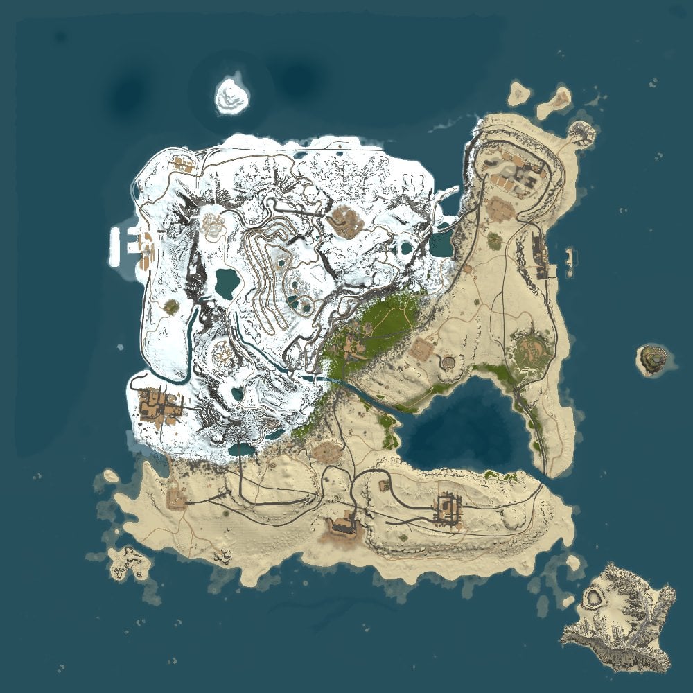 A biome contrast map made to challenge players with the two harshest biomes in Rust. Fire and Ice features a huge ice shelf melting into a bordering desert, a large fresh water lake, 4 seperate military bases, huge ice caves, and so much more! Terrain topology has been carefully considered to accomodate hemp and node spawns, and dozens of pathways up the massive Ice Shelf have been designed to help players rise to the top. We have taken the time to playtest this with our playerbase on two different wipes and the response has been overwhelmingly positive!