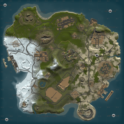 Its diverse terrain ranges from lush forests to arid zones and rugged coastlines, complemented by rolling hills, deep valleys, and elevated plateaus. This natural variety provides strong build locations, natural cover, and tactical advantages across the entire map.
