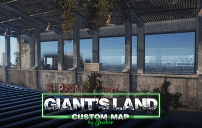 Would you like to feel like a little ant in a huge world? You have such an opportunity to play on my new map. The 5 times enlarged custom monuments such as Supermarket and Gas Station located on a small map will give you and your players a lot of pleasure to realize that you are just an ant in the land of Giants. Also added to all this are several places to build a base on the territory of the Huge Monuments.