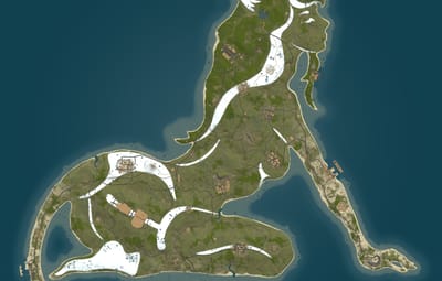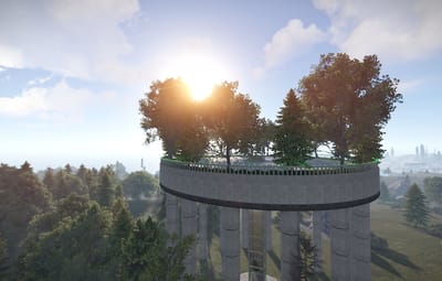 I want to present you an unusual map in the form of a girl. Here you will find a lot of custom places to build a base, such as: places on the water with a ready-to-use farm, a tree house, modern style houses, a glass sphere and many others. And there are also custom monuments and a challenge house, where players can find very good loot. The landscape is well suited for spawning raidable bases. And it will also be very convenient for players to build a house on the water, because there is a shallow depth near the shores. The railway is connected to the metro.