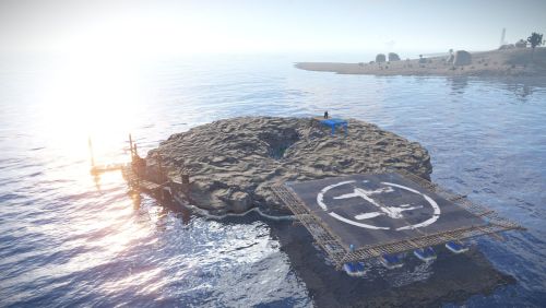 1 island in the ocean with a personal berth and a place for helicopters to land