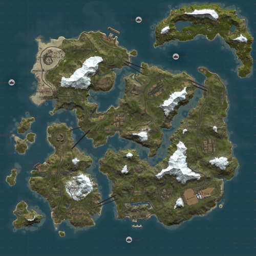 There are a large number of landscape places on this map that are perfect for construction, as well as custom places for construction on the map, they are marked with an asterisk (*) on the map
