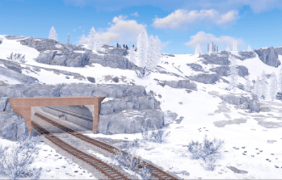 The map was designed from the ground up to contain a lot of monuments, yet the map still feels open and spacious and has room to add future monuments to the map with ease. There is also a huge rail network weaving around the map that also connects to a lot of my custom monuments.