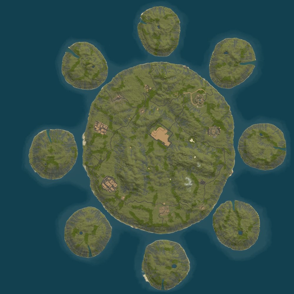 All 8 islands have same amount of resources and pattern , 1 custom lighthouse inland , a river and a lake each one of the islands is connected by a bridge to the mainland.