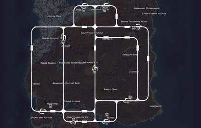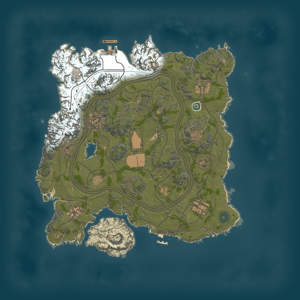 The map boasts a perfect symmetry like no other, which works to promote easy starts, more encounters, and less quitting. There are no dead spots, or hotspots, or tiers. There are no unclimbable cliffs, and no chokepoints. There is plenty of loot, plenty of nodes, plenty of roads, evenly spaced. Every location is a viable base location.