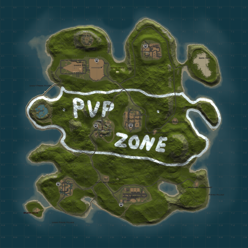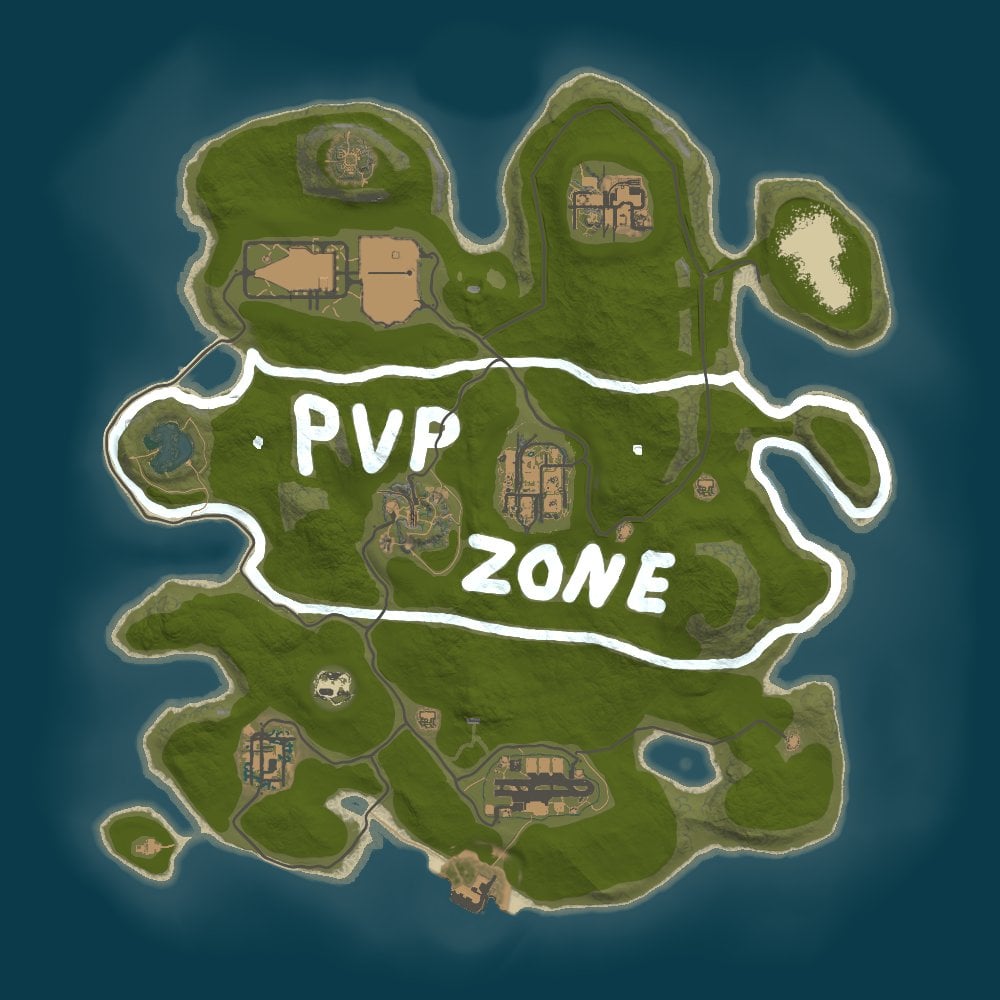 map has 4 custom monuments "Cruise Ship" "Death Train" , "Haunted House" , "Subway (bypass's PVP zone)".