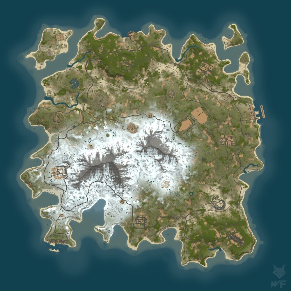 This map has custom places to build a base, such as: hobbit house, glass sphere in winter, tree house, places that have a farm ready to use and many others. There are 20 custom places on the map in total and they are marked on the map. And also on the map there is a tower to shoot down a helicopter. Throughout the winter biome, there is beautiful grass that glows. There is a challenge house with good loot and several other custom monuments. Also, this map is ideal for raid bases because there is a shallow ocean near the land.