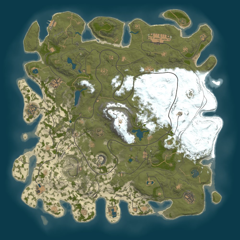 Kata Island is a particularly player-friendly island. It is well suited for PVE and Roleplay servers. One thing was very important when creating the map: Rust's standard monuments should be used as little as possible. Because it is particularly interesting not to always see the same things. The Nuclear Power Plant, Watertreatment, Arctic Military Base, Airport, the gas station and other monuments were replaced by custom structures. This promotes the joy of discovery in the game.