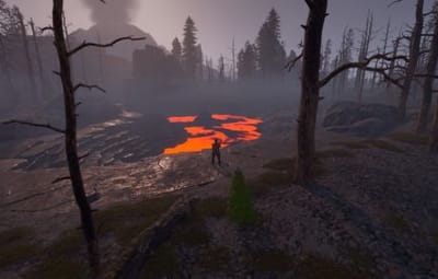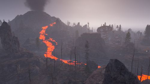 Featuring a smoking volcano, lava , dead vegetation, rock formations & plenty of ores.
