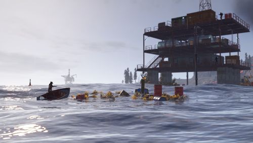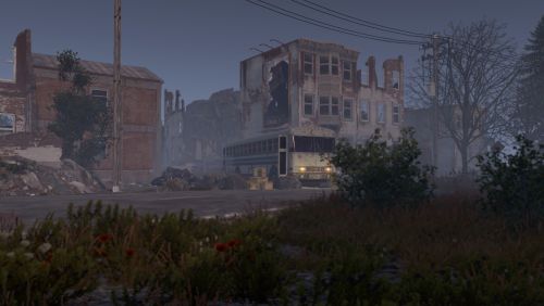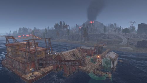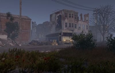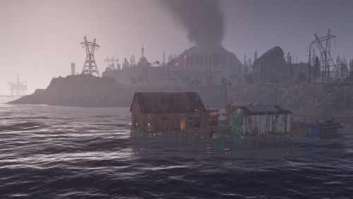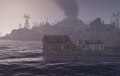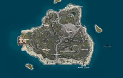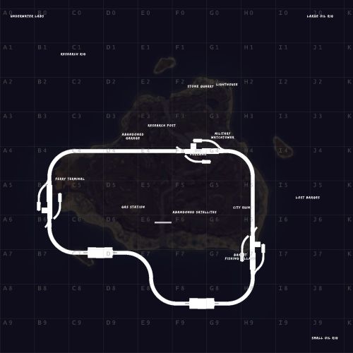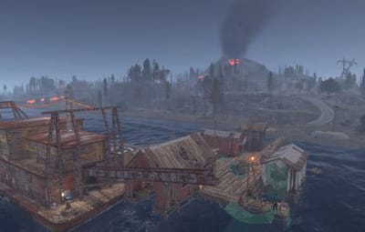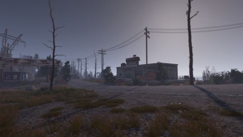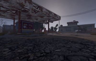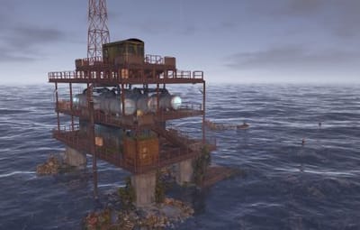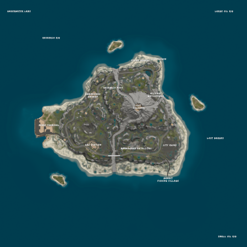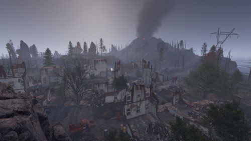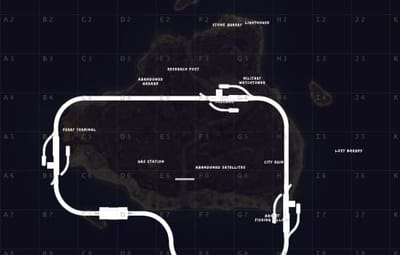 - Contains green keycard puzzle, loot, recycler, oil refinery. - City Ruins