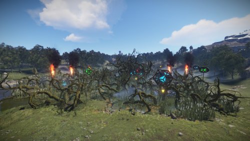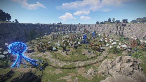 If you ask me "What the hell is going on on the map?" then I'll tell you that I don't know it myself xD. I really wanted to try to create a map in the style of sci-fi mixed with fiction. It turned out something cosmic, with elements of an extraterrestrial civilization, by the way, and the name "Land of Invaders". Perhaps the inhabitants of this island lived their own lives and did not touch anyone and one day they were overtaken by the unknown. Some flying monoliths began to appear all over the island, strange and frightening plants began to sprout in one of the glades. Do not understand what kind of creature built the portal through which his companions came...and by the way, they looked just like ordinary people. As for the rest, I'll keep the explanation to myself. So to speak, I will let you dream up for yourself