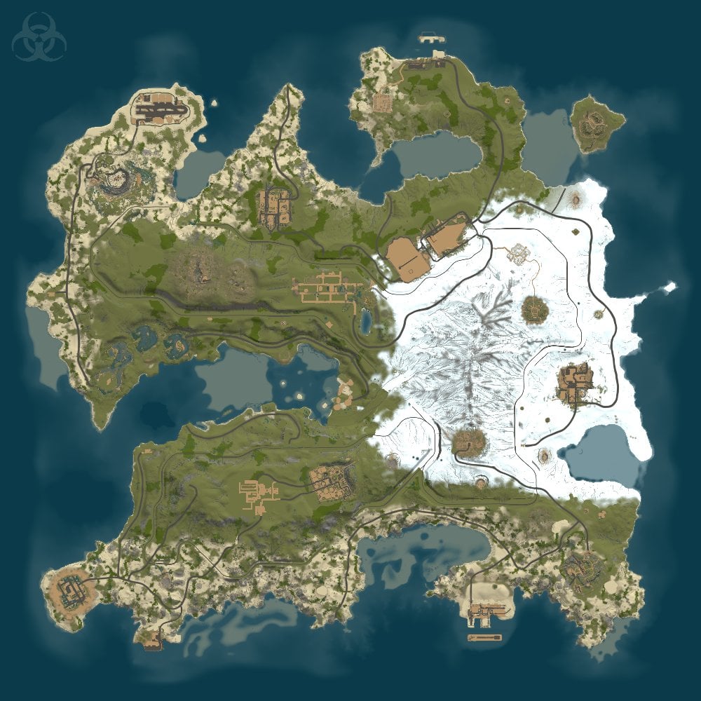This map will plunge you into the world of the recent apocalypse. On it, you will find an abandoned city, underground monuments, a huge factory, a destroyed port and a lot of interesting things both for research and for shootouts with scientists, zombies or other players. The main focus on the map is on the railway. By train, you can travel almost the entire map from the sandy biome to the ice canyon. On the map, you can navigate on anything, be it a surface train, subway, cars, boats. On the railway, Workcart (a plug-in from Cashr) is spawned, the plug-in comes with the map. Along the length of the railway there are stations where you can recycle loot (2 station creator by Jtedal). Quite an interesting map with its own atmosphere. The landscape is still made in the World Creator 2 program and looks perfect, the multi-level map will allow you to observe beautiful views and landscapes. Good luck fighters!