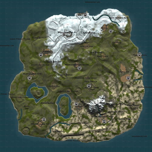 Welcome to Launch Island, a fully custom Rust map featuring the latest ziplines + unique custom monuments and a fully functional above-ground train system! This 4k map is packed full of engaging areas for players to explore and loot while also giving players a familiar feel with vanilla monuments.