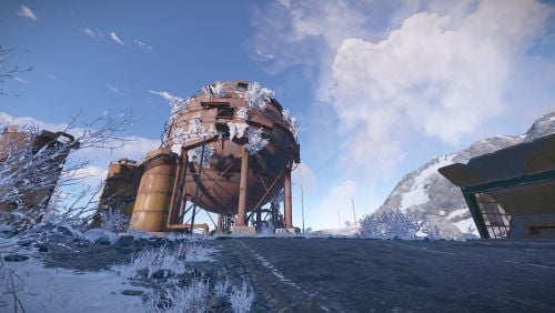 Cooling Tower is a kind of adaptation of a coal tower in a smaller size and is slightly customized in the surrounding area. The functionality is still the same - unloading of filled wagons with resources