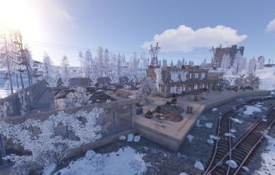 Explore the underground railway and a double-track surface railway with two metro entrances and separate spawn train branches. The ring road supports event plugins, while monuments are evenly spaced to optimize FPS load.