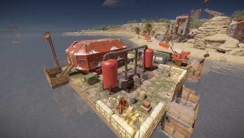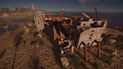 "EXO Water Station"- Medium size monument, can be found at the bigger lakes or sea. Has barrels and crates up to level 2, plus a recycler .