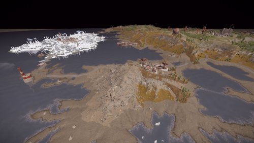 Created and painted in World Creator 3.5k custom map. Just above 7k prefabs makes it fps friendly. Map contains custom monuments like "Road stop" that could be found near the roads . Biggest monument "EXO Station" . It has quite a lot of to explore and even can be used like an arena for fights because of its layout. Another custom monument is "EXO Water Station" that could be found at the bigger lakes or sea. It is daughter monument to "EXO Station" thats why smaller, contains less loot but has recycler . RP players will find custom places to build not only on the ground but in the air to.