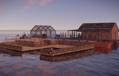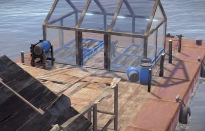 1. a barge with a shed in which you can line up. on board the barge there is a greenhouse with already placed beds and light, there is also a barrel for fresh water next to the greenhouse. The Water Bases plugin will fit perfectly here, allowing you to build foundations on water, and then build residential buildings.