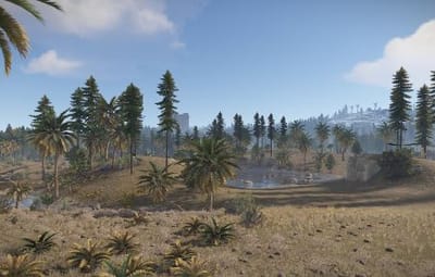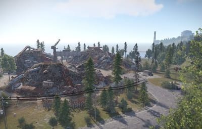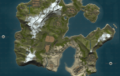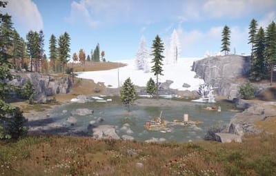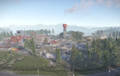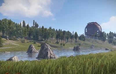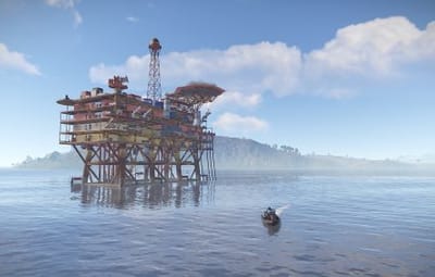 The following monuments are present on the map: Abandoned Military Base Airfield Arctic Research Base Harbor Junkyard Launch Site Missile SIlo Oil Rig small Oil Rig large Power Plant The Dome Train Yard Gas Station x2 Supermarket x2 Warehouse x2 Fishing village x3 Underwater labs x4 Bandit Camp Outpost Custom build place: Abandoned Village x2 Build Barge x3 Custom: Military peninsula Ore barge x9
