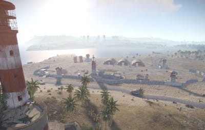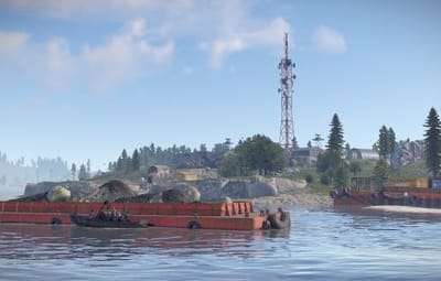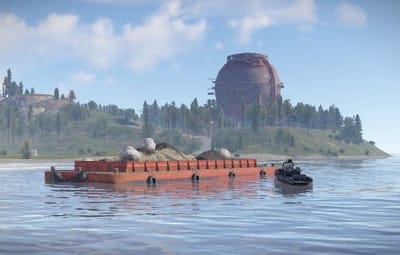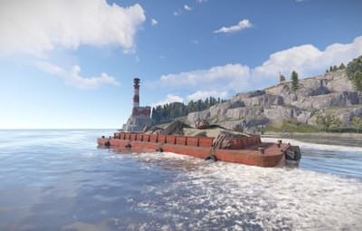 Also, barges with sulfur ore, iron ore and stone ore are located around the island. This will not cause any imbalance, since there will spawn from 5 to 7 boulders on each barge. The WaterPatrol plugin will fit perfectly here, which will spawn NPCs patrolling the waters on boats around the island.
