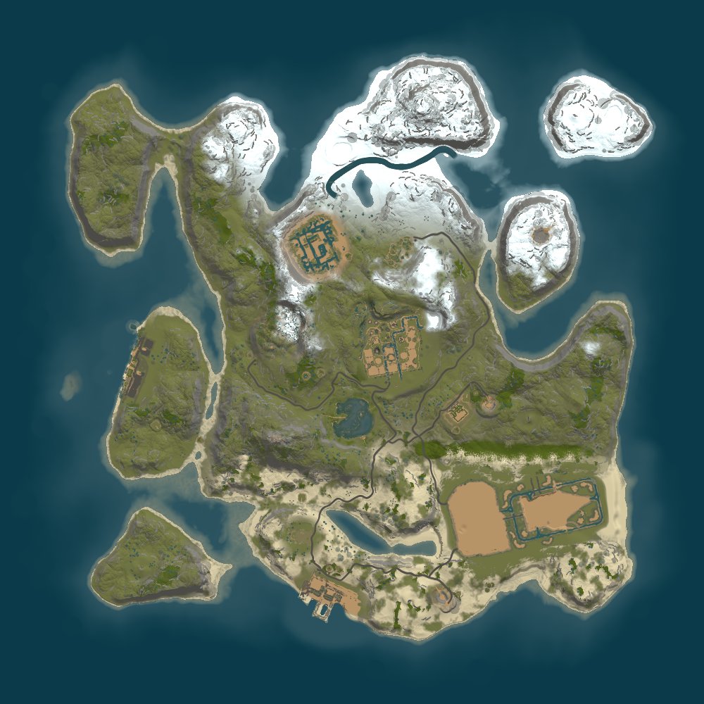 This small map with Large monuments added are perfect to fit on small low-pop server to increase interaction between players and enjoy puzzle like Launchsite Monuments.