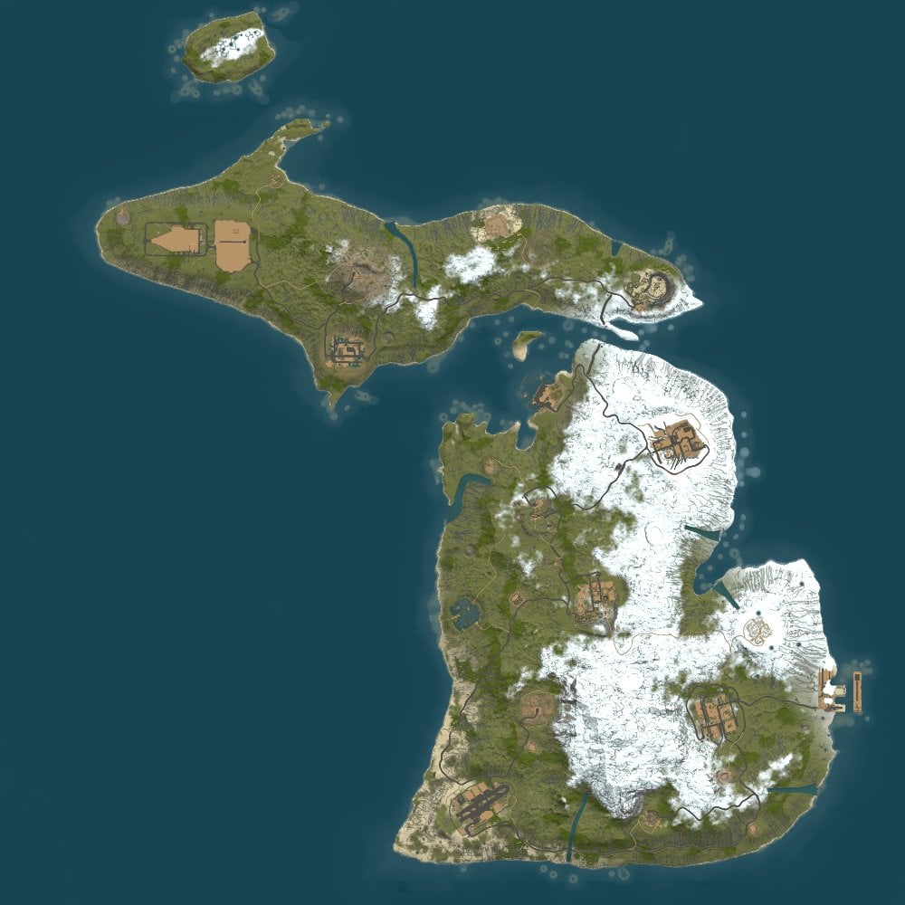 Michigan 4K is a custom shaped map with procedural monuments , it has been shaped after the State of Michigan