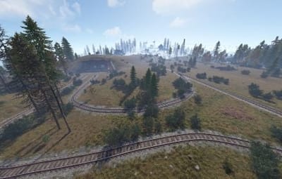 In short, this 2000-sized Rust map offers a complete and dynamic experience, including key landmarks and the intriguing addition of train tracks connected to underground rails.