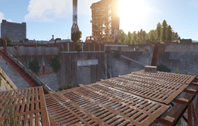 Facepunch monuments: Fishing villages, Large Harbor, JunkYard, airfield, Nuclear Missile Silo, quarries: HQM, Sulfur, Stone, Ferry Terminal, Lighthouse, Military Base, Bandit Town+Outpost, Satellite Dish, Launch Site, RadTown, Arctic Research Base, Small and Large Oilrig, TrainYard, Sphere Tank, Gas station, Supermarket, Large barn, Warehouse.
