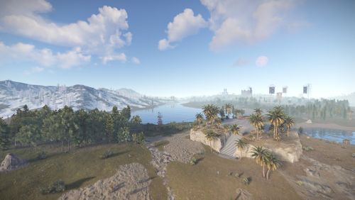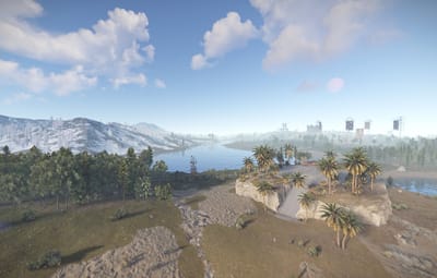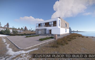 Norddream Island is a map on which many custom places to build a base are waiting for you, such as: an underwater place, a glass sphere in the snow, many places with a ready-to-use farm, floating islands, modern houses, underground places and many others. All custom places are marked on the map. There are also custom monuments here, such as: Motel, in which players can find a research paper, which can be used to buy something in the motel shop. The bradley arena is a place where 3 bradleys are located, to destroy them, the player needs several red access cards. Helicopter defense tower - here players can conveniently shoot down a helicopter. Car service - here players can find parts for the car and much more. The landscape is well suited for spawning raid bases. The external railway is connected to the metro.