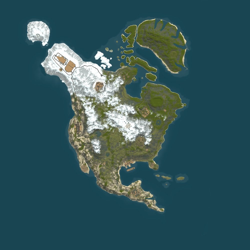 North America 4K has been shaped after the North American continent in an attempt to do biomes and terrain elevations accordingly , map features solely procgen monuments no customs