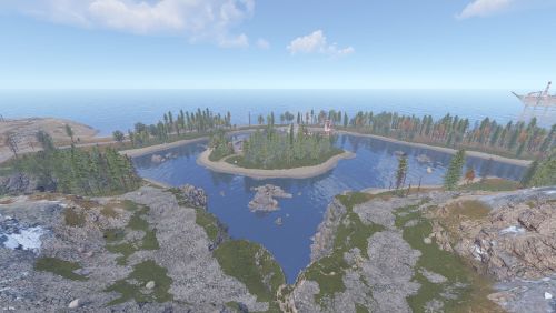 A small map in the (OneGrid) style with unique monuments featuring intriguing puzzles and a fully customized underwater monument.