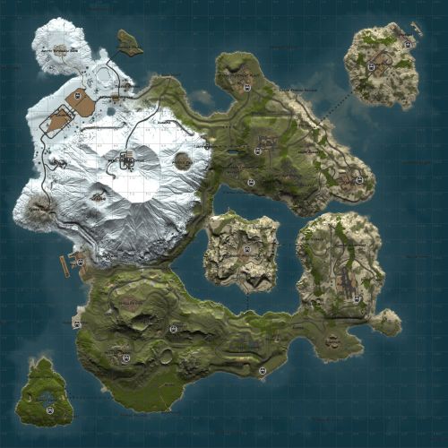 I present to your attention a new atmospheric map. It is a sequel to "Oregon: Land of the Dead”. This map was created in the WorldCreator 2 program and has a multi-level terrain. In the center of the map, you will find a large island surrounded by fresh water. Also on the map, there is a huge number of custom monuments, places to build bases, merchants, bridges, shops, and most importantly a lot of car tunnels and railway tracks.