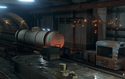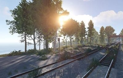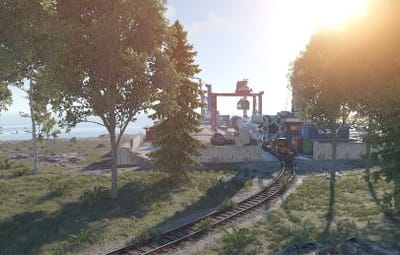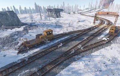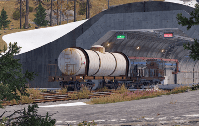 This map features a large twin line surface railway that has a one-way system per track running around the map enabling full compatibility with cargo train event on the surface, as well as a link from the surface to the underground railway that also works with the event and allows it to travel up or down and of course players, can do the same with their work carts.