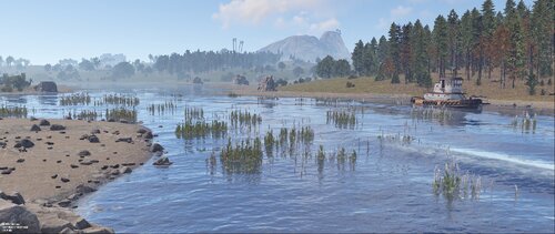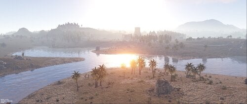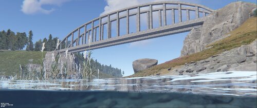 The map features a large island with two meandering rivers and a secret laboratory that can be explored and looted. The map is built from the ground up with a hand-drawn island shape and a custom height map to give it a unique look and feel.
