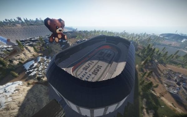 not only because of the nice road work but ALSO with an amazing nascar arena Monument