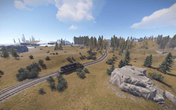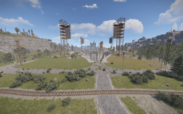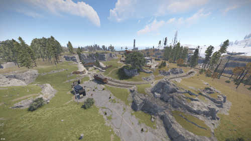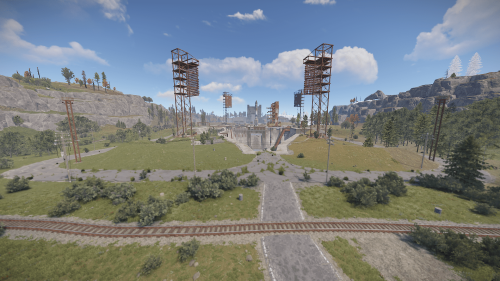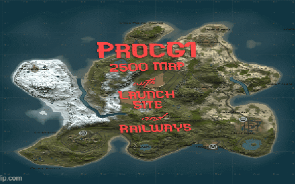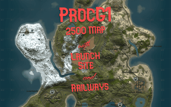 Procedural 2500 size map edited with large monuments and above ground railway network