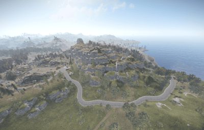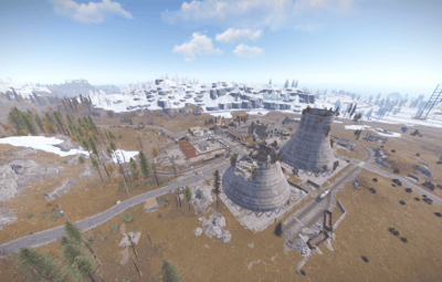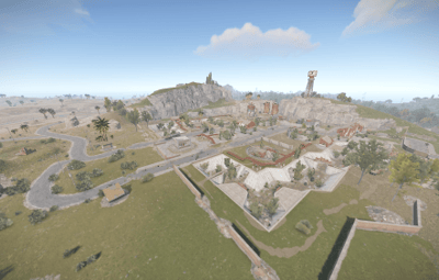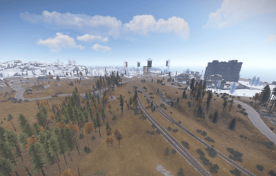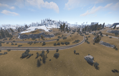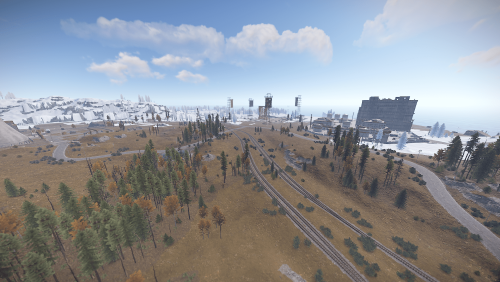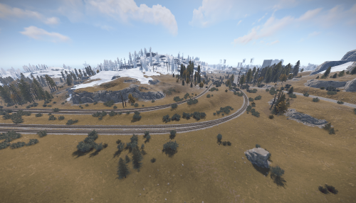 Procedural 3000 size map edited with large monuments and above ground railway network