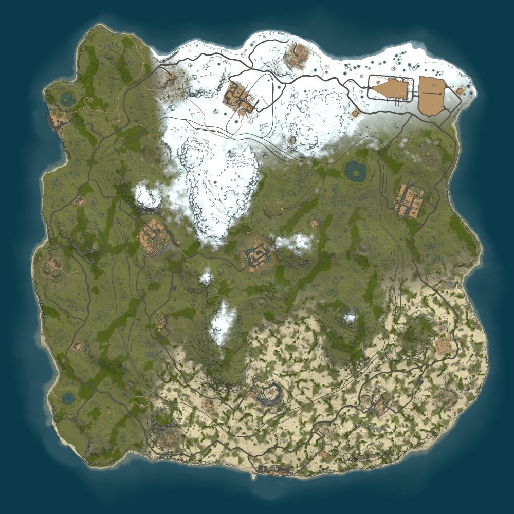 Procedural 3500 size map edited with large monuments and above ground railway network