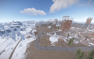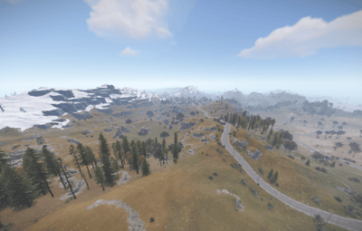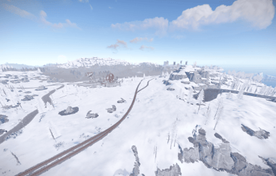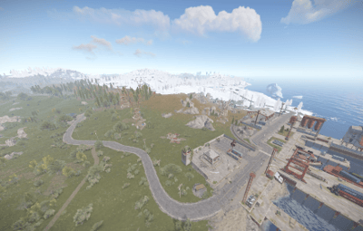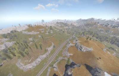 Procedural 3000 size map edited with large monuments and above ground railway network