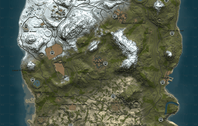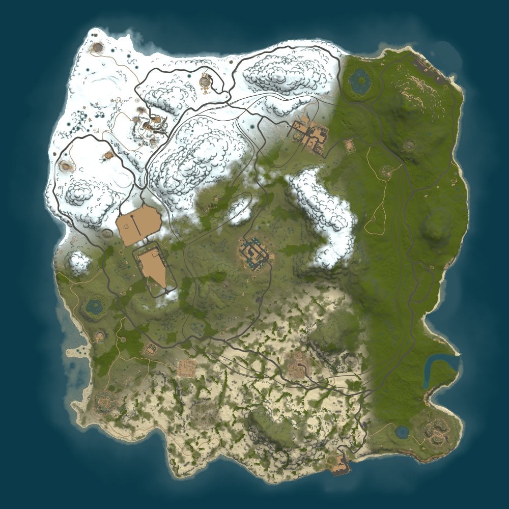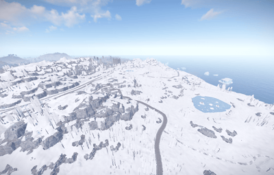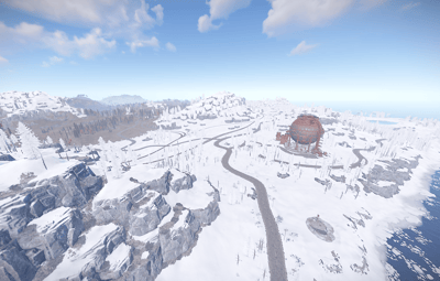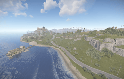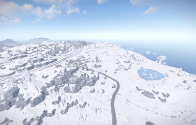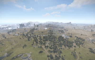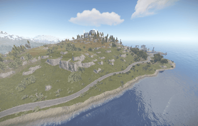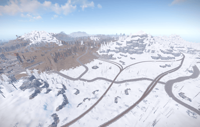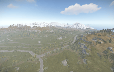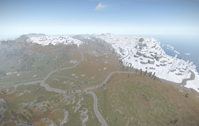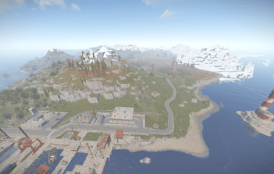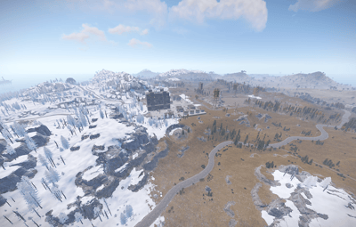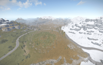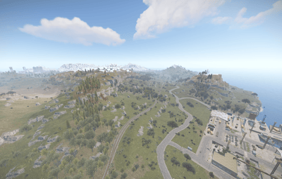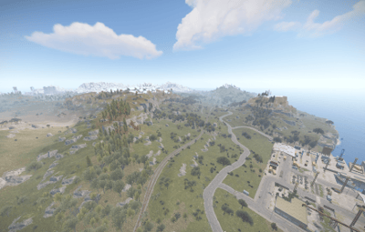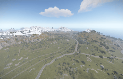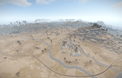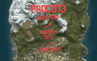 Procedural 3000 size map edited with large monuments and above ground railway network
