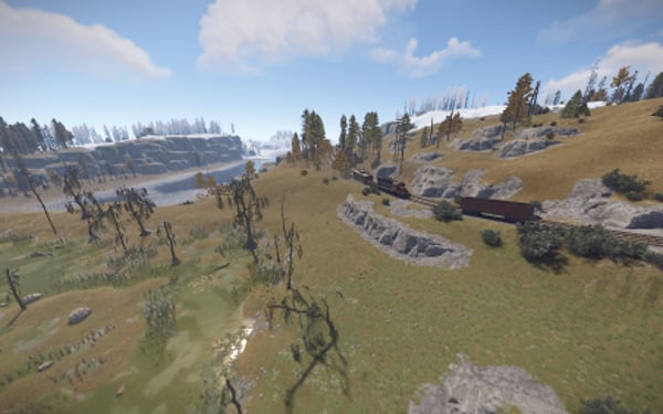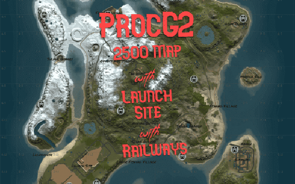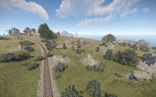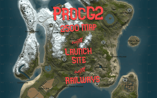 Procedural 2500 size map edited with large monuments and above ground railway network